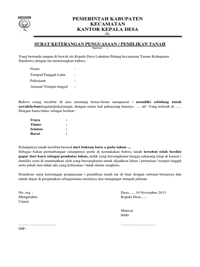 Contoh Surat Keterangan Penguasaan Tanah Pdf