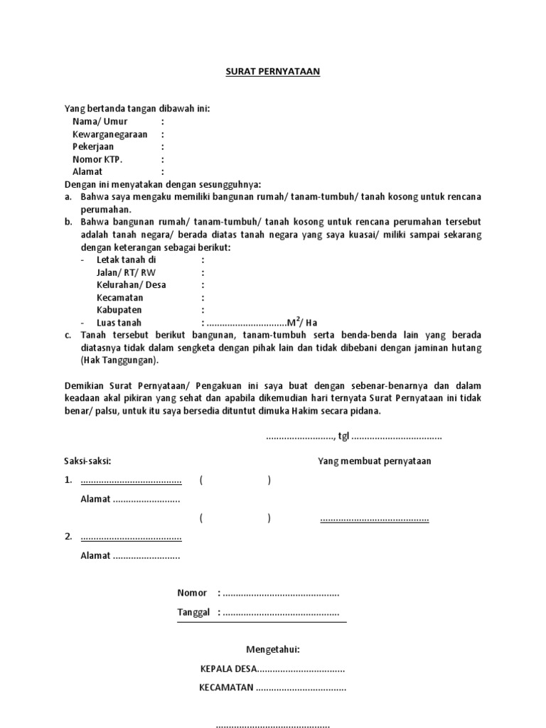 RT05 Desa Kuap Kec. SURAT PERNYATAAN PENGUASAAN FISIK TANAH BANGUNAN TIDAK SENGKETA DAN BEBAS DARI KAWASAN LINDUNG Yang bertanda tangan dibawah ini. Surat keterangan riwayat tanah tersebut merupakan salah satu alat bukti tertulis untuk menunjukkan kepemilikan tanah guna kepentingan proses pendaftaran tanah.